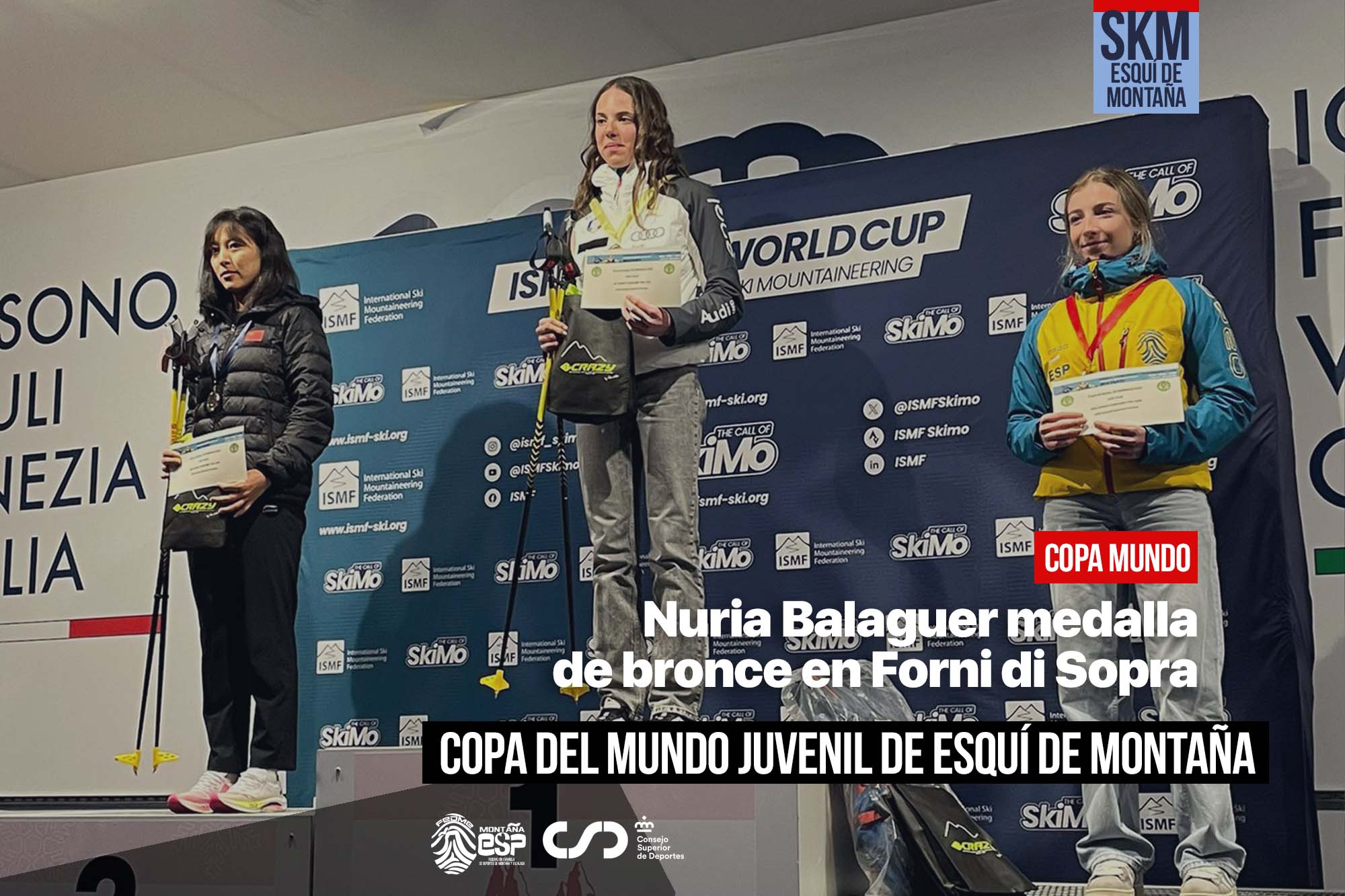 La localidad italiana de Forni di Sopra acogió el sábado 25 de enero la prueba de Sprint de la Copa del Mundo Juvenil de Esquí de Montaña. La española Nuria Balaguer se colgó la medalla de bronce en la categoría U18 femenina. Destaca la actuación de Luca Fuentes, que roza el podio de la categoría U18 masculina con la cuarta posición.