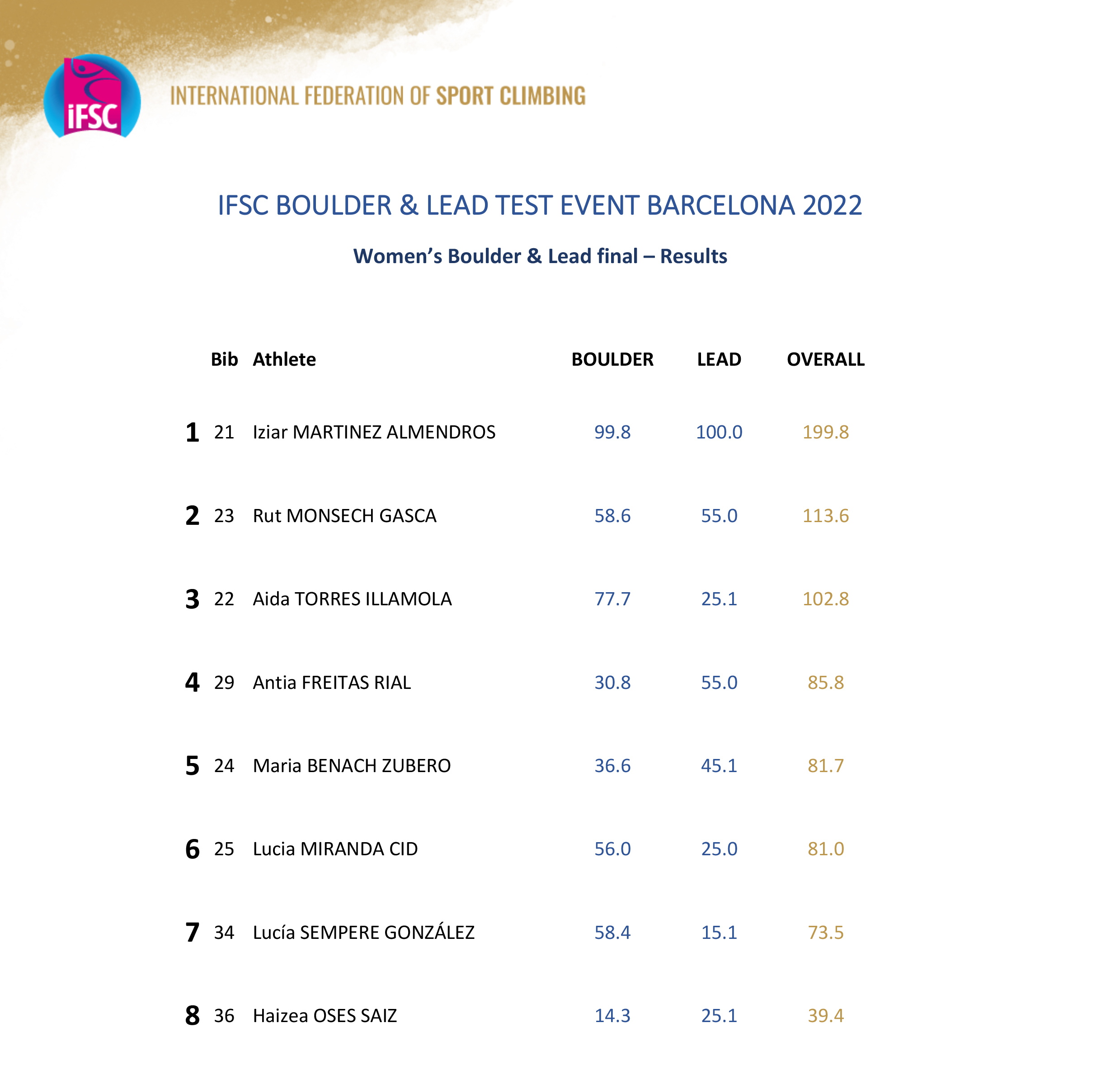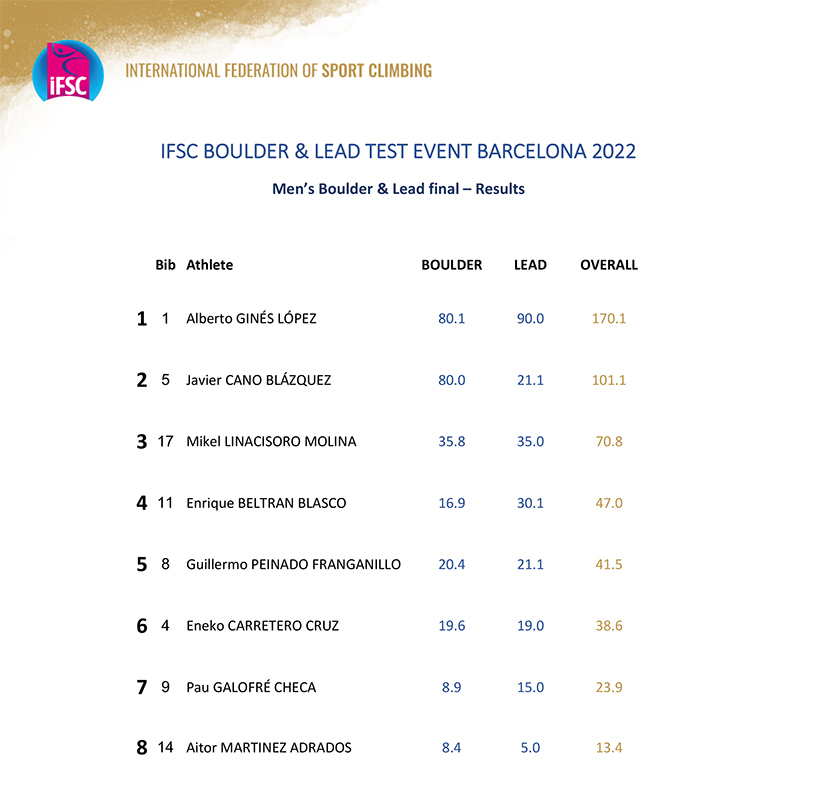 Francisco Javier Aguilar se hace con el bronce en la B2 (ceguera parcial). El de Andalucía se sube la podio de la B2 tras haber competido en esta categoría al no haber suficientes escaladores en la B1 (ceguera total). Raúl Simón consigue la sexta posición en la general.