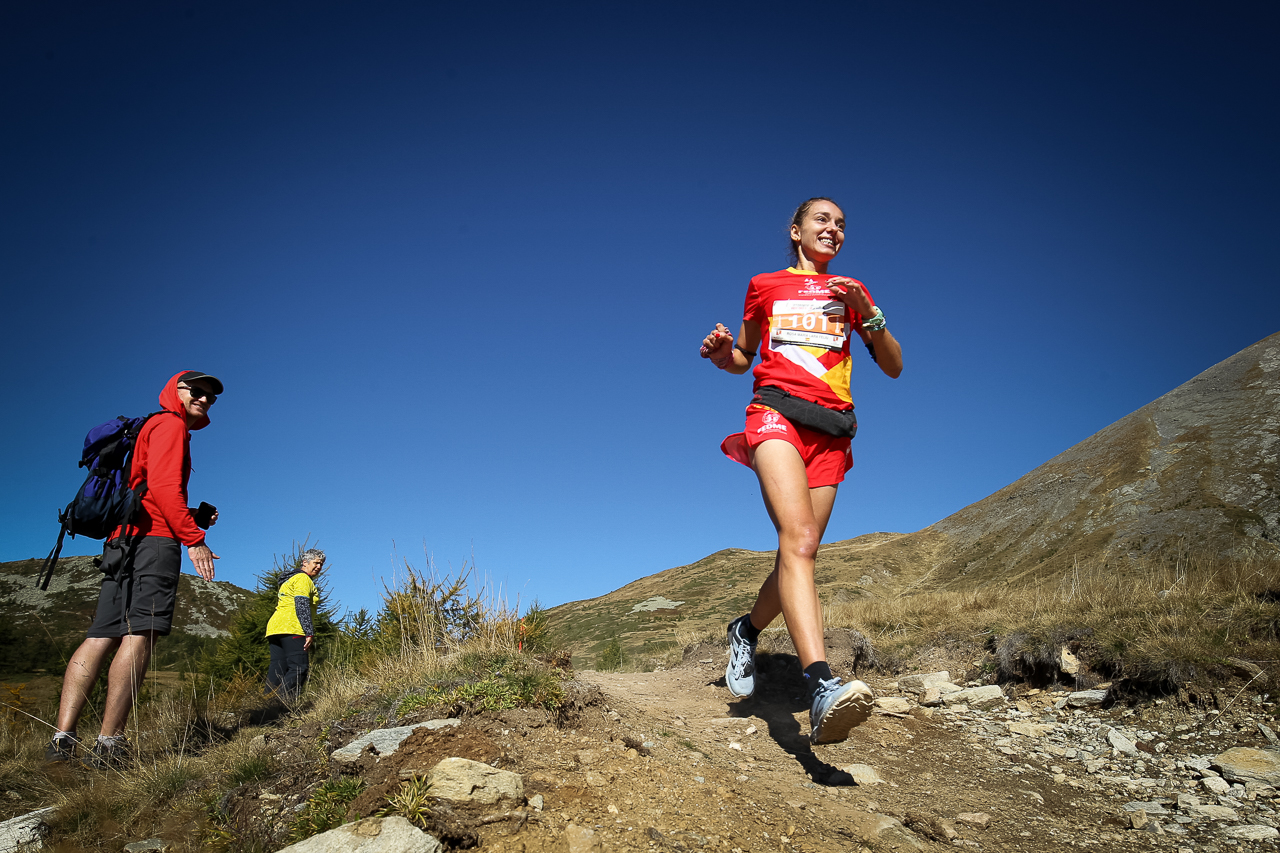 En la categoría femenina el grupo de favoritas se mantenía más compacto en los kilómetros iniciales. Una carrera que contaba con la participación de Denisa Dragomir (ROU), Lina El Kott (SWE), Sanna El Kott (SWE), Barbora Macurova (CZE), Celine Lafaye (FRA), Georgia Tindley (GBR) y Takako Takamura (JPN). Las chicas, a su paso por el avituallamiento de Gattascosa, llegaba mucho más agrupada, con la corredora rumana Denisa Dragomir en primera posición seguida de un pequeño grupo de corredoras que ocupaban la segunda a sexta posición con muy poco margen de diferencia.
