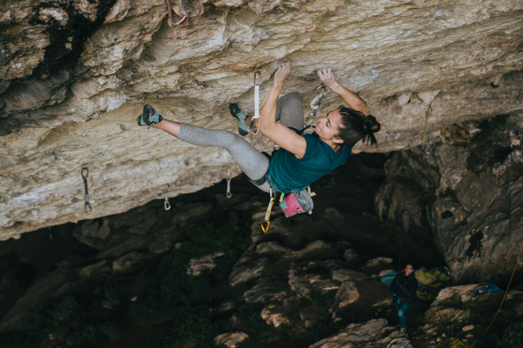 Cuando me fijé en ella, la línea me gustó mucho, ya que es una vía que surca todo el desplome de la cueva, acabando en lo más alto de la placa. Es una vía bastante física de fuerza-resistencia, con un bloque muy marcado de agarres pequeños en la mitad, algo que me gustó mucho.