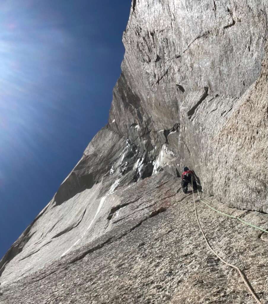 – Lucía Guichot, FMM, escalada de la vía Eslovena + Eternal Flame, 1.200 m, 7c+, A2, M6, en la Torre sin Nombre (6.251 m) en las Torres del Trango, Pakistán.