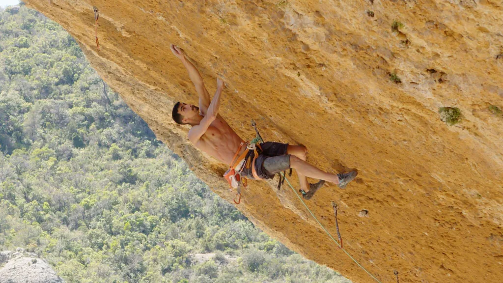 Actividad: Escalada deportiva en roca, ascensión de la vía Pelotari (8c+) en estilo flash.