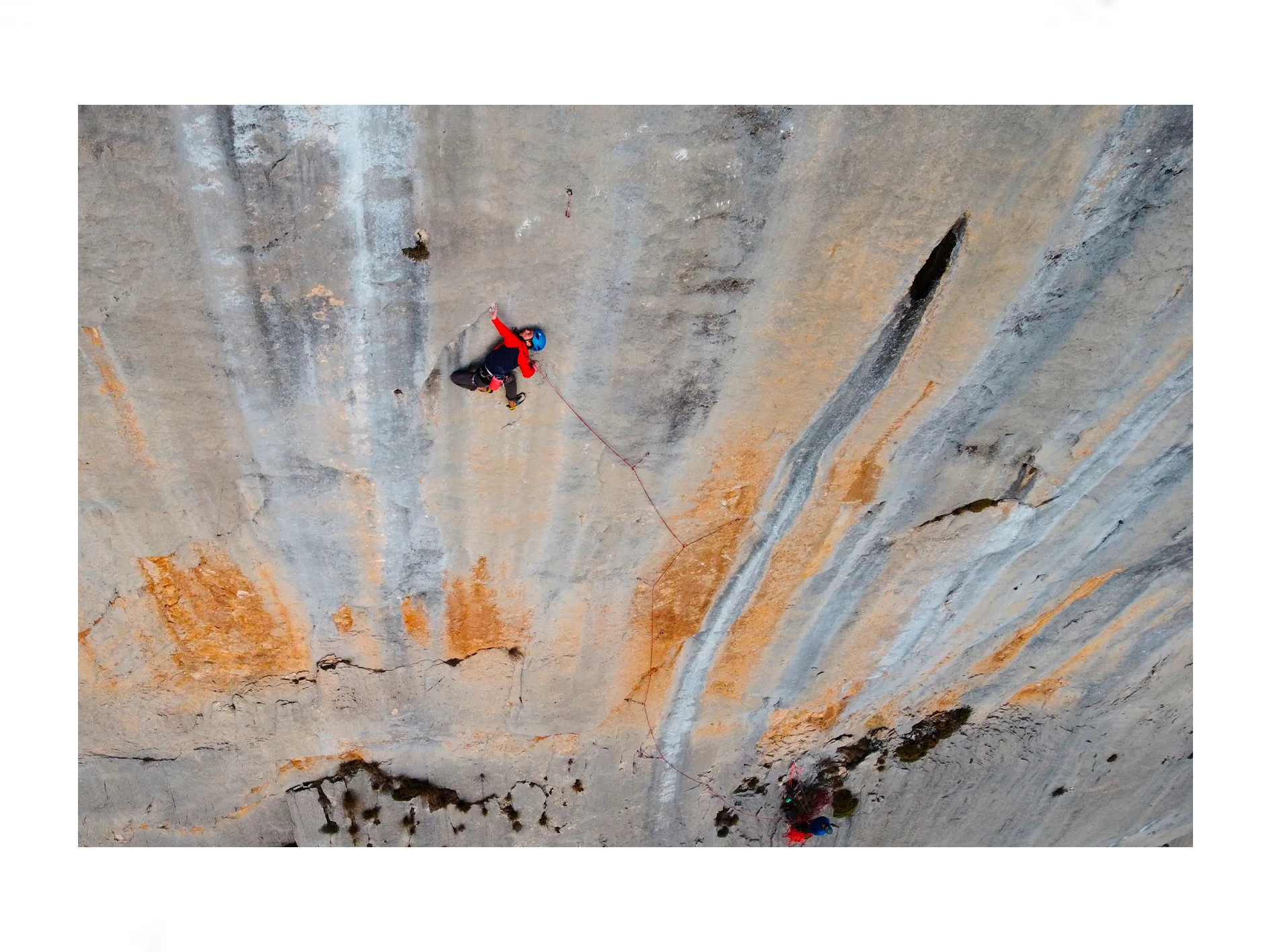Longitud y dificultad de los largos: 200 m, con secciones de 8A, 7C, 7C, 8B/+, 7C+, 7C