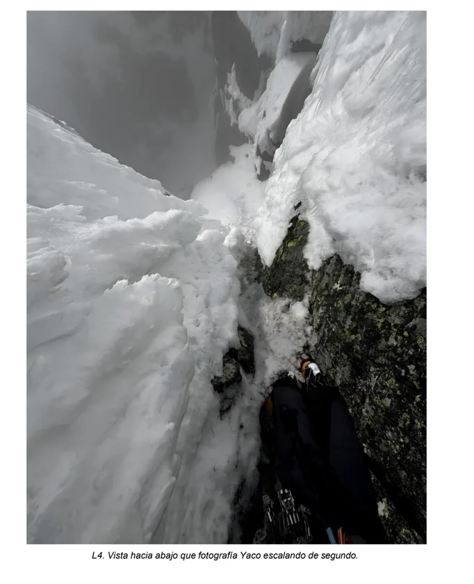 📍 Montaña: Casquerazo Superior (2.430 m), Sierra de Gredos 📍 Vertiente: Este/Sureste 📈 Longitud: 210 m (4 largos) | Desnivel acumulado: 1.050 m + 300 m de pared ⛏️ Estilo: Alpino y sostenible | Dificultad: IV/AI4+, X (90°) 🏆 Logro: Primera ascensión invernal 👥 Equipo: Santiago Callejo Villuela y Yaco Neches