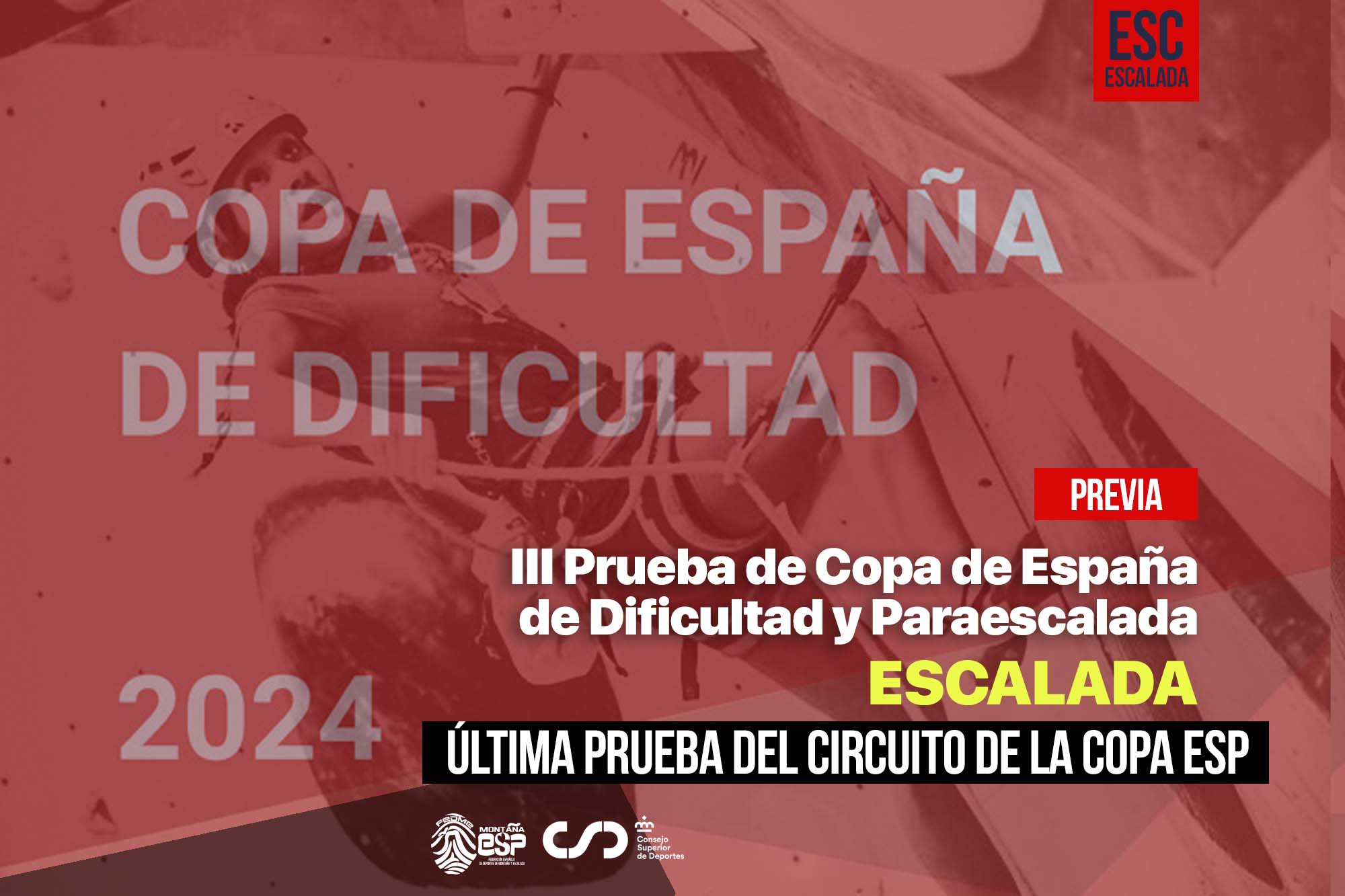Las categorías que competirán en la III Prueba de la Copa de España de Escalada serán Sub-14, Sub-16, Sub-18 y Absoluta.