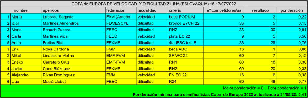 La localidad eslovaca de Zilina acogía entre los días 15 a 17 de julio la Copa de Europa de Velocidad y Dificultad con 11 deportistas de la Selección Española en competición.