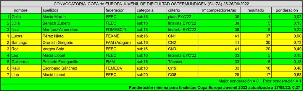 Tras la celebración de la prueba internacional, se hacen públicas las ponderaciones y resultados de nuestr@s deportistas.