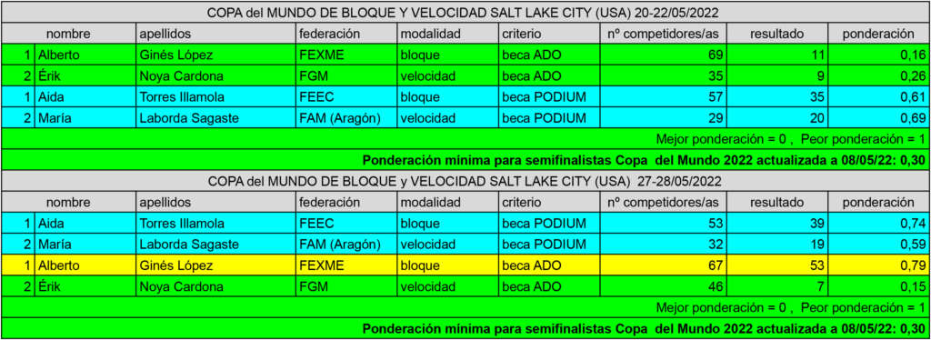 La localidad estadounidense de Salt Lake City acogía las pasadas semanas dos pruebas de Copa del Mundo de Bloque y Velocidad, con 4 deportistas de la Selección Española en competición.