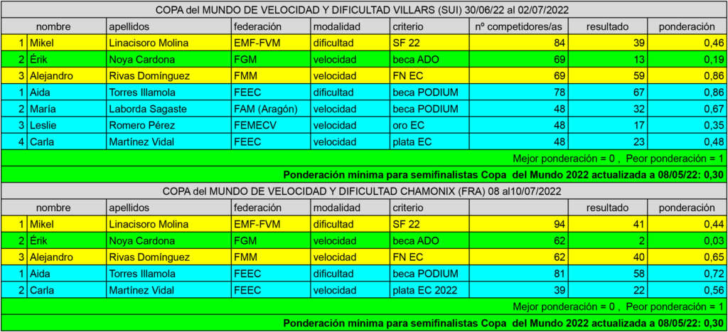 Tras la celebración de la prueba internacional, se hacen públicas las ponderaciones y resultados de nuestr@s deportistas.