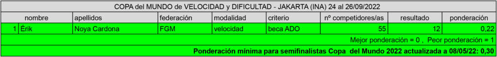 Tras la celebración de ambas pruebas internacionales, se hacen públicas las ponderaciones y resultados de nuestro deportista.