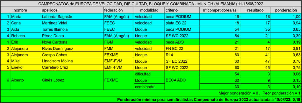 La localidad alemana de Munich acogía entre los días 11 a 18 de agosto los Campeonatos de Europa de Velocidad, Dificultad, Bloque Y Combinada. Una competición a la que la selección española desplazaba a diez deportistas