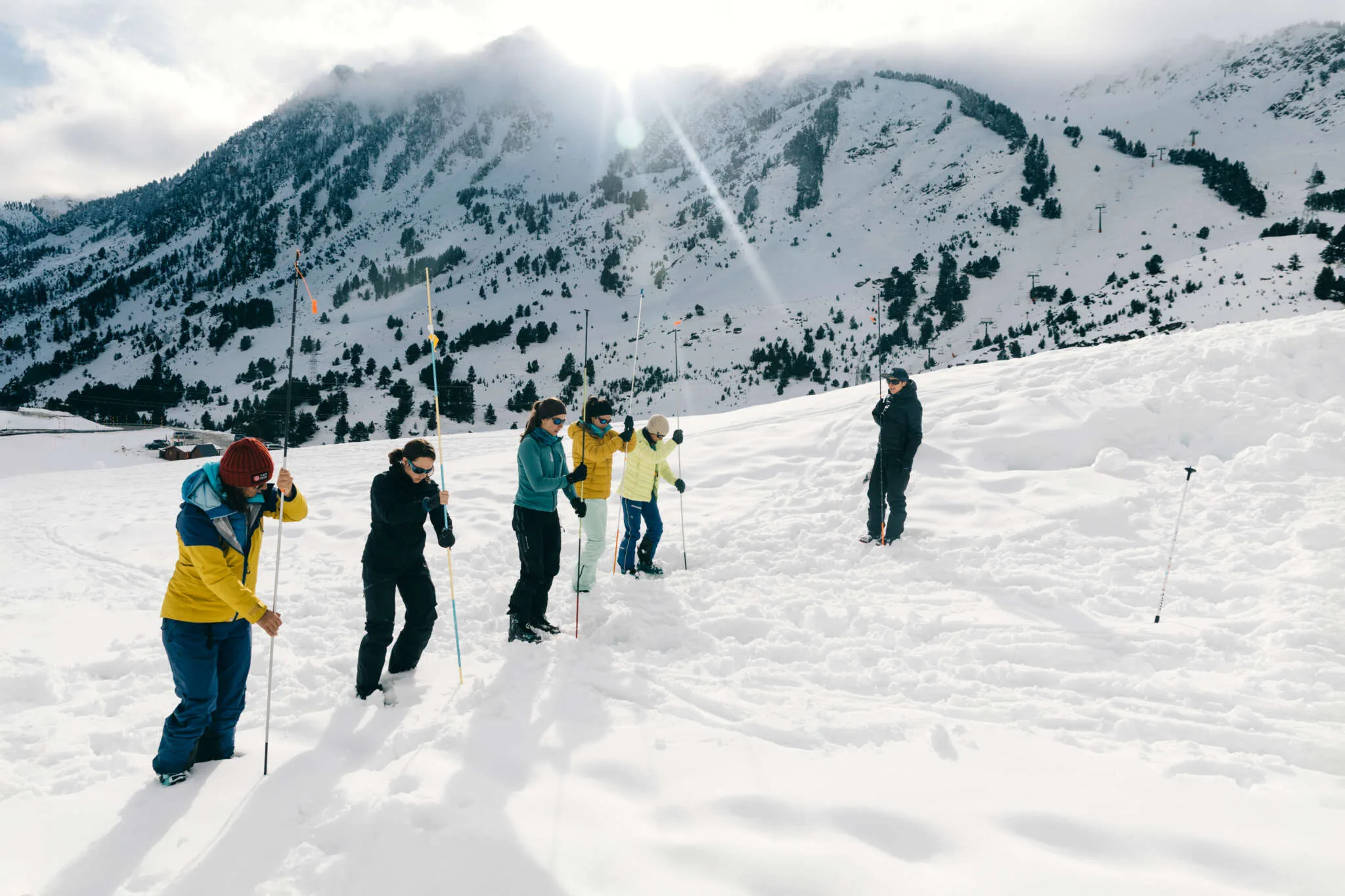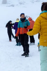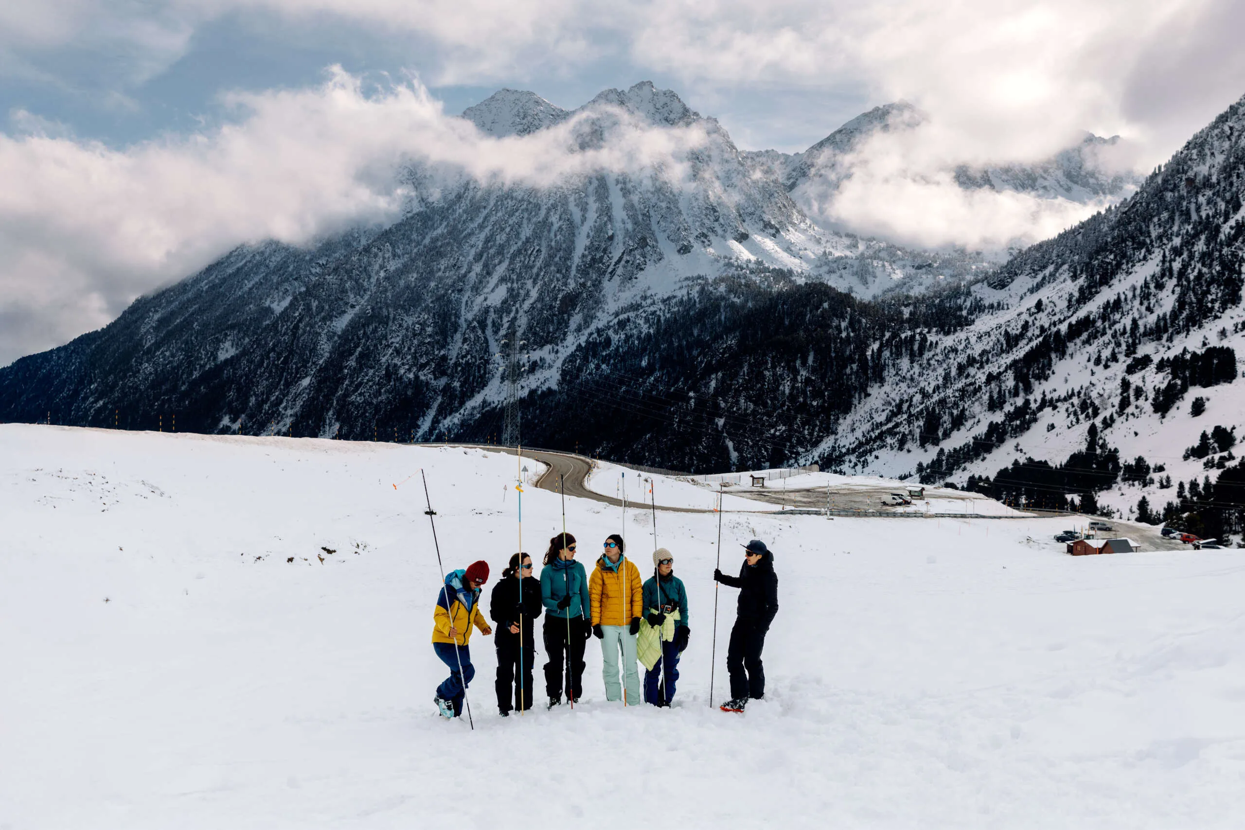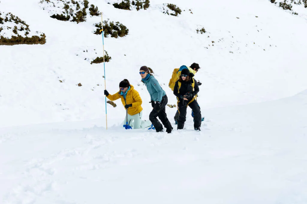 Los dos días siguientes se desarrollaron íntegramente en el Val d’Aran y estuvieron centrados en la seguridad en terreno de aludes. Junto a Montse Bacardit, nivóloga y predictora de avalanchas en el Val d’Aran, las deportistas realizaron el curso de Seguridad en Terreno de Aludes (Nivel 1) de la ACNA. Esta formación combinó contenidos teóricos con salidas prácticas sobre el terreno, proporcionando herramientas y conocimientos fundamentales para circular con mayor seguridad en entornos invernales.