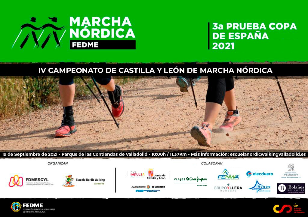 La ciudad Valladolid acoge el próximo domingo 19 de septiembre la tercera de las cuatro citas de la Copa de España de Marcha Nórdica FEDME.La tercera prueba del circuito FEDME será además Campeonato de Marcha Nórdica de Castilla y León.