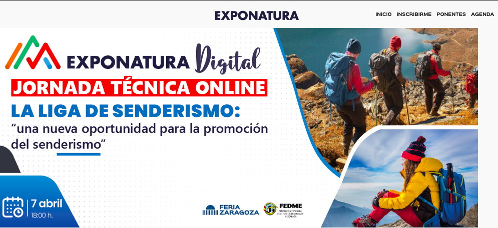 La Feria Exponatura programa una Jornada Técnica Online gratuita para dar a conocer y explicar el sentido de la «Liga de Senderismo» que organiza la FEDME, el 7 de abril de 2022 a las 18:00 horas. La feria tendrá lugar del 13 al 15 de mayo en el Palacio de Congresos de Zaragoza.