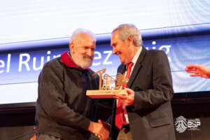 La cita fue el marco de entrega de los Premios FEDME a las mejores actividades Alpinísticas y de Escalada 2022, así como el reconocimiento a Personas, Entidades, Organizaciones y Empresas colaboradoras con la Federación. Una gala que contó con un contenido especial centrado en el Centenario. Un momento especial en el que Julio Perea, coordinador del Centenario, hizo el reconocimiento a los presidentes de la federación, los clubes fundadores, entrega de los premios del concurso fotográfico y la entrega de las menciones especiales a Eduardo Martínez de Pison, Darío Rodríguez y Sebastián Alvaro.